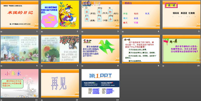 关键词:米佳的日记教学课件,湘教版一年级上册语文PPT课件下载,一年级语文幻灯片课件下载,米佳的日记PPT课件下载,.PPT格式;