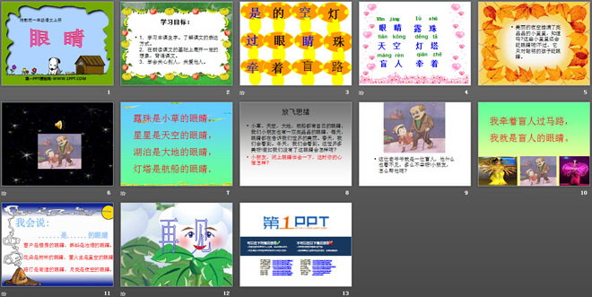 关键词:眼睛教学课件,湘教版一年级上册语文PPT课件下载,一年级语文幻灯片课件下载,眼睛PPT课件下载,.PPT格式;
