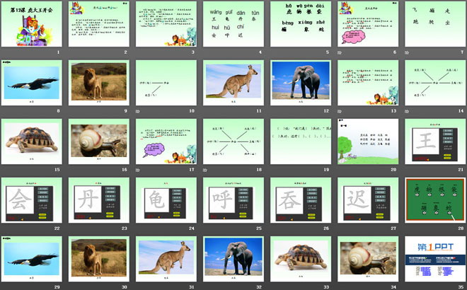 关键词:虎大王开会教学课件,湘教版一年级下册语文PPT课件下载,一年级语文幻灯片课件下载,虎大王开会PPT课件下载,.PPT格式;