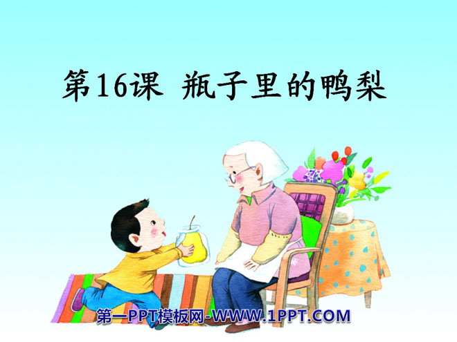 关键词:瓶子里的鸭梨教学课件,湘教版一年级下册语文PPT课件下载,一年级语文幻灯片课件下载,瓶子里的鸭梨PPT课件下载,.PPT格式;