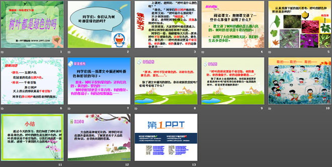 关键词:树叶都是绿色的吗教学课件,湘教版一年级下册语文PPT课件下载,一年级语文幻灯片课件下载,树叶都是绿色的吗PPT课件下载,.PPT格式;