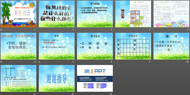 关键词:彩色的云教学课件,湘教版一年级下册语文PPT课件下载,一年级语文幻灯片课件下载,彩色的云PPT课件下载,.PPT格式;