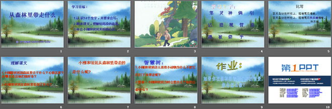 关键词:从森林里带走什么教学课件,湘教版二年级上册语文PPT课件下载,二年级语文幻灯片课件下载,从森林里带走什么PPT课件下载,.PPT格式;