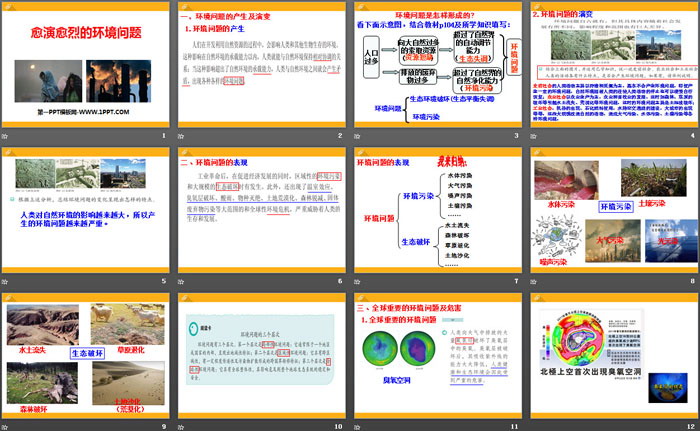 关键词:人教版九年级下册历史与社会PPT课件免费下载,愈演愈烈的环境问题PPT下载,共同面对前所未有的挑战PPT下载,.PPT格式;