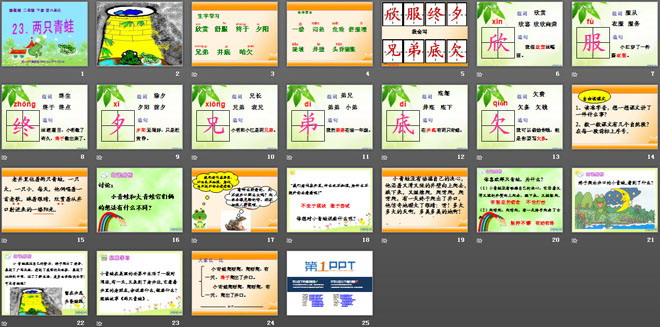 关键词:两只青蛙教学课件,湘教版二年级下册语文PPT课件下载,二年级语文幻灯片课件下载,两只青蛙PPT课件下载,.PPT格式;