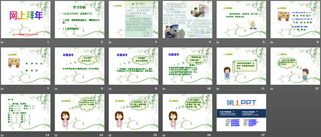 关键词:网上拜年教学课件,湘教版二年级上册语文PPT课件下载,二年级语文幻灯片课件下载,网上拜年PPT课件下载,.PPT格式;