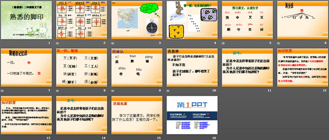 关键词:熟悉的脚印教学课件,湘教版二年级下册语文PPT课件下载,二年级语文幻灯片课件下载,熟悉的脚印PPT课件下载,.PPT格式;
