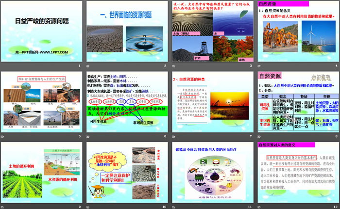 关键词:人教版九年级下册历史与社会PPT课件免费下载,日益严峻的资源问题PPT下载,共同面对前所未有的挑战PPT下载,.PPT格式;