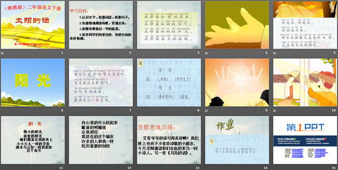 关键词:太阳的话教学课件,湘教版二年级下册语文PPT课件下载,二年级语文幻灯片课件下载,太阳的话PPT课件下载,.PPT格式;