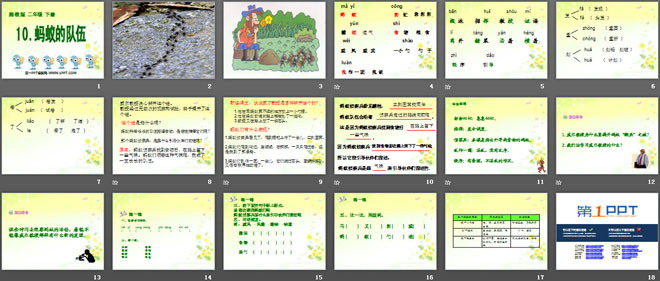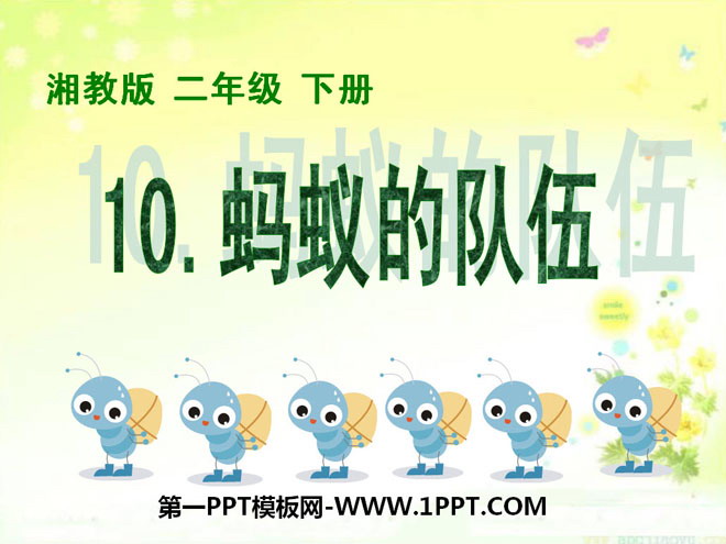 关键词:蚂蚁的队伍教学课件,湘教版二年级下册语文PPT课件下载,二年级语文幻灯片课件下载,蚂蚁的队伍PPT课件下载,.PPT格式;