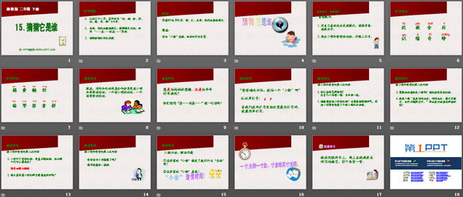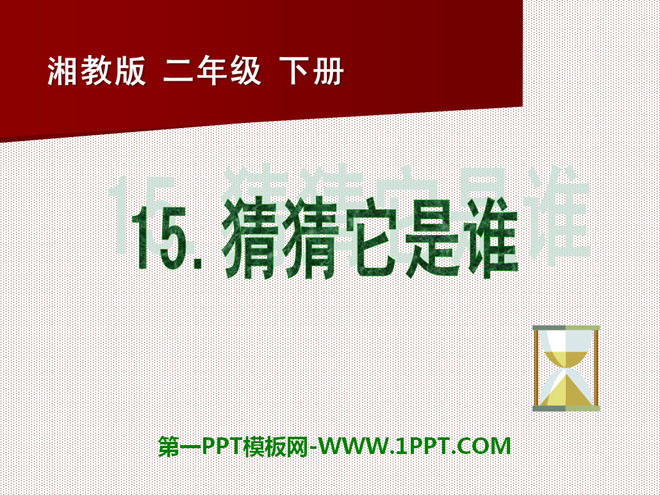 关键词:猜猜它是谁教学课件,湘教版二年级下册语文PPT课件下载,二年级语文幻灯片课件下载,猜猜它是谁PPT课件下载,.PPT格式;