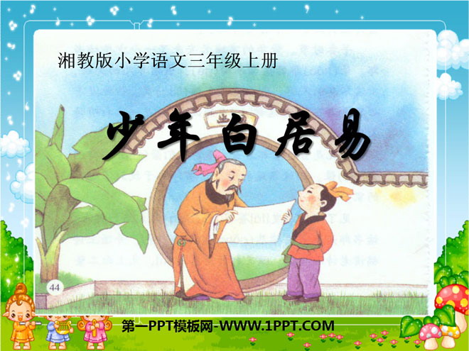 关键词:少年白居易教学课件,湘教版三年级上册语文PPT课件下载,三年级语文幻灯片课件下载,少年白居易PPT课件下载,.PPT格式;