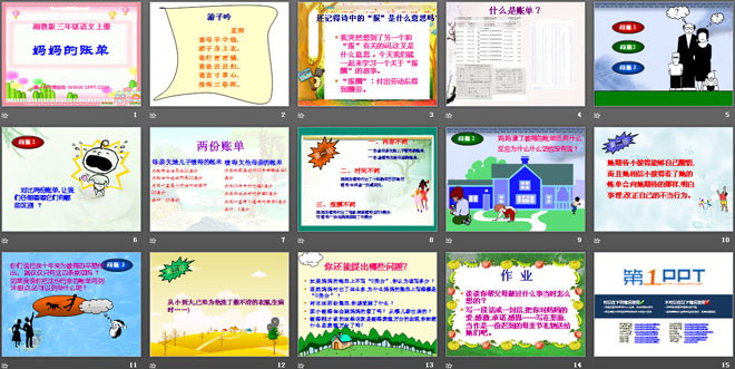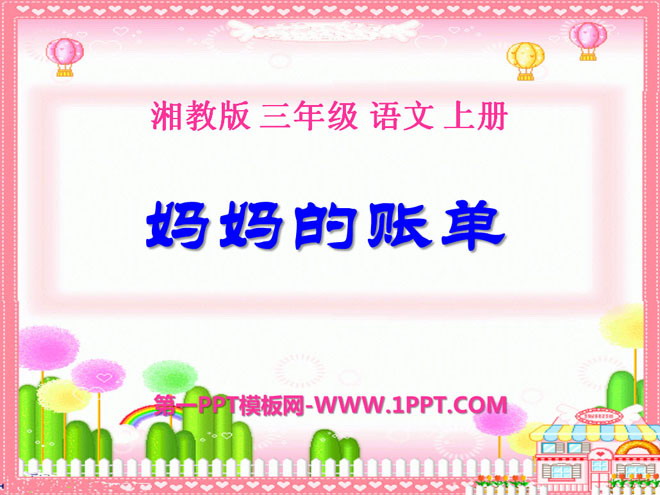 关键词:妈妈的账单教学课件,湘教版三年级上册语文PPT课件下载,三年级语文幻灯片课件下载,妈妈的账单PPT课件下载,.PPT格式;