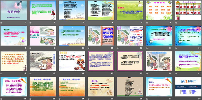 关键词:倾斜的伞教学课件,湘教版三年级上册语文PPT课件下载,三年级语文幻灯片课件下载,倾斜的伞PPT课件下载,.PPT格式;