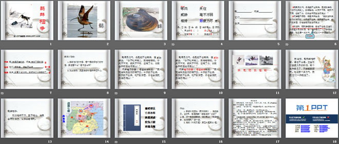 关键词:鹬蚌相争教学课件,湘教版三年级上册语文PPT课件下载,三年级语文幻灯片课件下载,鹬蚌相争PPT课件下载,.PPT格式;