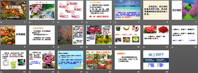关键词:迷人的秋色教学课件,湘教版三年级上册语文PPT课件下载,三年级语文幻灯片课件下载,迷人的秋色PPT课件下载,.PPT格式;