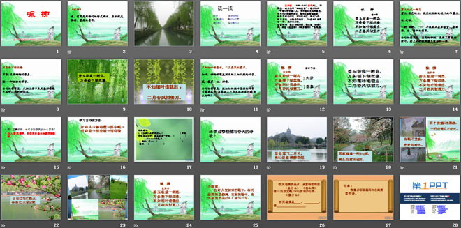 关键词:咏柳教学课件,湘教版三年级下册语文PPT课件下载,三年级语文幻灯片课件下载,咏柳PPT课件下载,.PPT格式;