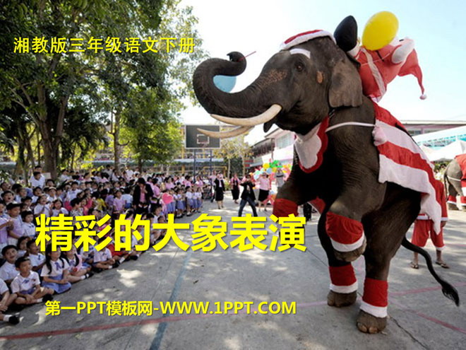 关键词:精彩的大象表演教学课件,湘教版三年级下册语文PPT课件下载,三年级语文幻灯片课件下载,精彩的大象表演PPT课件下载,.PPT格式;