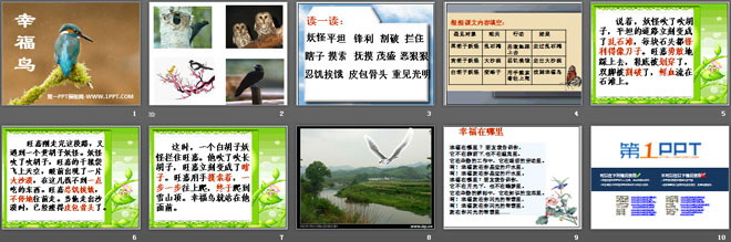 关键词:幸福鸟教学课件,湘教版四年级上册语文PPT课件下载,四年级语文幻灯片课件下载,幸福鸟PPT课件下载,.PPT格式;
