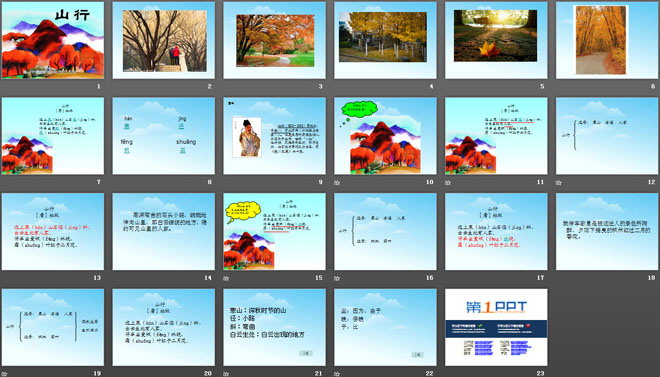 关键词:山行教学课件,湘教版四年级上册语文PPT课件下载,四年级语文幻灯片课件下载,山行PPT课件下载,.PPT格式;
