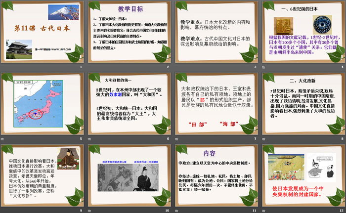 关键词:部编人教版九年级上册历史PPT课件免费下载,古代日本PPT下载,.PPT格式;
