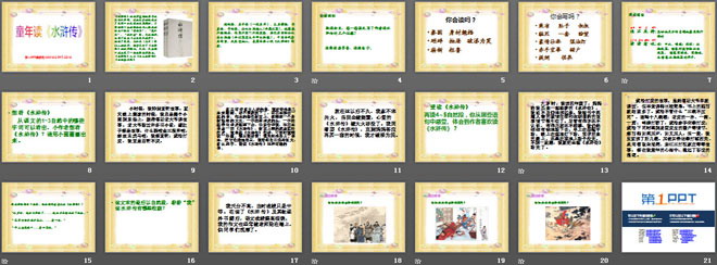 关键词:童年读水浒传教学课件,湘教版四年级下册语文PPT课件下载,四年级语文幻灯片课件下载,童年读水浒传PPT课件下载,.PPT格式;