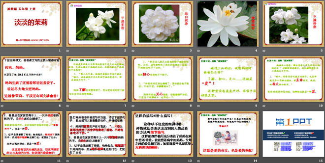 关键词:淡淡的茉莉教学课件,湘教版五年级上册语文PPT课件下载,五年级语文幻灯片课件下载,淡淡的茉莉PPT课件下载,.PPT格式;