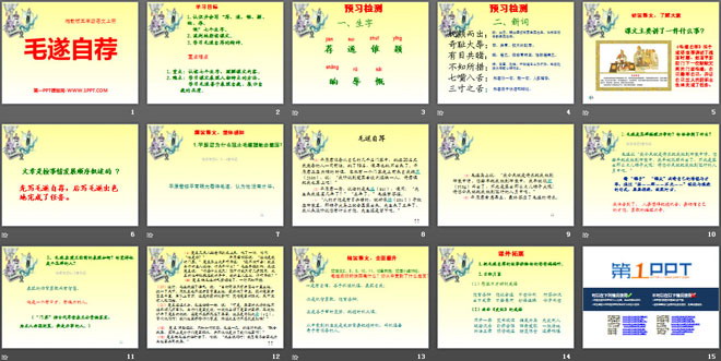 关键词:毛遂自荐教学课件,湘教版五年级上册语文PPT课件下载,五年级语文幻灯片课件下载,毛遂自荐PPT课件下载,.PPT格式;
