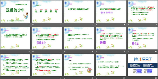 关键词:送报的少年教学课件,湘教版五年级上册语文PPT课件下载,五年级语文幻灯片课件下载,送报的少年PPT课件下载,.PPT格式;