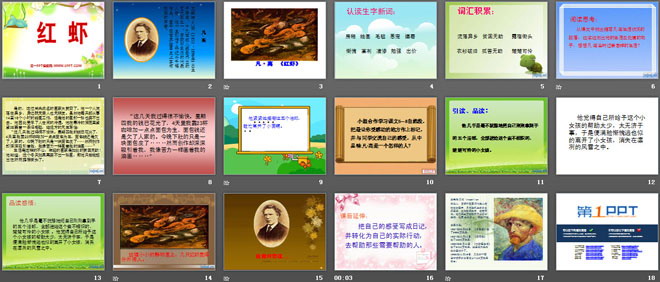 关键词:红虾教学课件,湘教版五年级下册语文PPT课件下载,五年级语文幻灯片课件下载,红虾PPT课件下载,.PPT格式;
