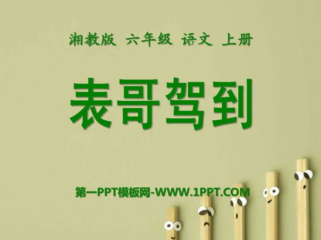 关键词:表哥驾到教学课件,湘教版六年级上册语文PPT课件下载,六年级语文幻灯片课件下载,表哥驾到PPT课件下载,.PPT格式;