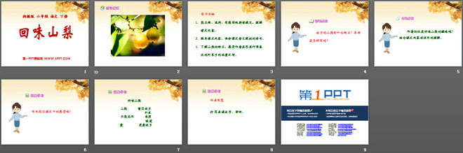 关键词:回味山梨教学课件,湘教版六年级下册语文PPT课件下载,六年级语文幻灯片课件下载,回味山梨PPT课件下载,.PPT格式;