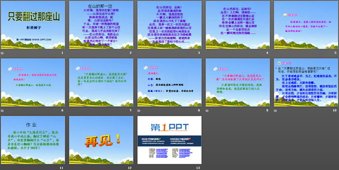 关键词:只要翻过那座山教学课件,湘教版六年级下册语文PPT课件下载,六年级语文幻灯片课件下载,只要翻过那座山PPT课件下载,.PPT格式;