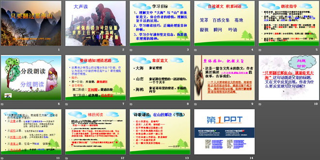 关键词:只要翻过那座山教学课件,湘教版六年级下册语文PPT课件下载,六年级语文幻灯片课件下载,只要翻过那座山PPT课件下载,.PPT格式;