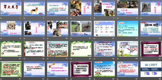 关键词:军犬黑子教学课件,湘教版六年级下册语文PPT课件下载,六年级语文幻灯片课件下载,军犬黑子PPT课件下载,.PPT格式;