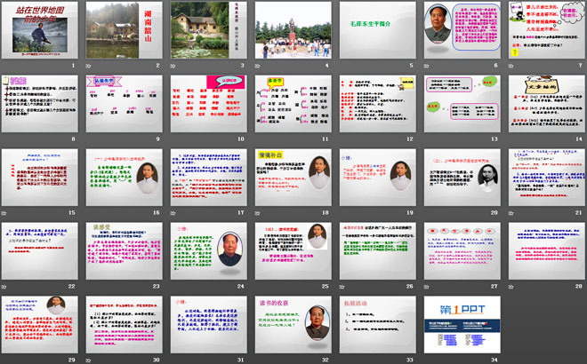 第三部分(8-13)读书拓宽了毛泽东的视野,站在世界地图前面引发了他救国救民的远大抱负。