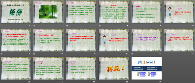 关键词:杨柳教学课件,湘教版六年级下册语文PPT课件下载,六年级语文幻灯片课件下载,杨柳PPT课件下载,.PPT格式;