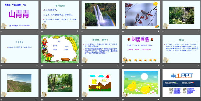 关键词:山青青教学课件,冀教版一年级上册语文PPT课件下载,一年级语文幻灯片课件下载,山青青PPT课件下载,.PPT格式;