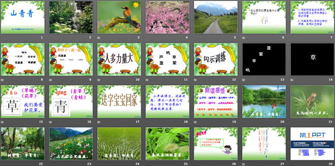 关键词:山青青教学课件,冀教版一年级上册语文PPT课件下载,一年级语文幻灯片课件下载,山青青PPT课件下载,.PPT格式;