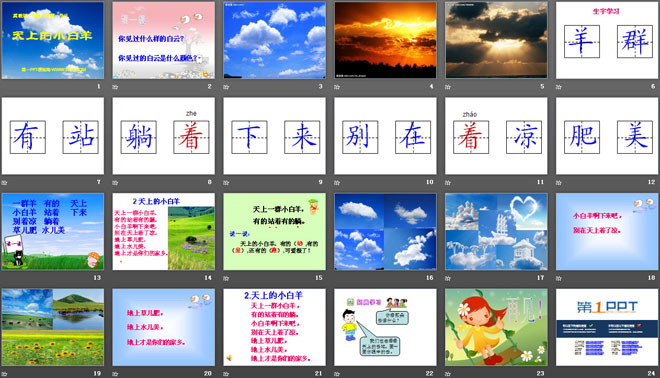 关键词:天上的小白羊教学课件,冀教版一年级上册语文PPT课件下载,一年级语文幻灯片课件下载,天上的小白羊PPT课件下载,.PPT格式;