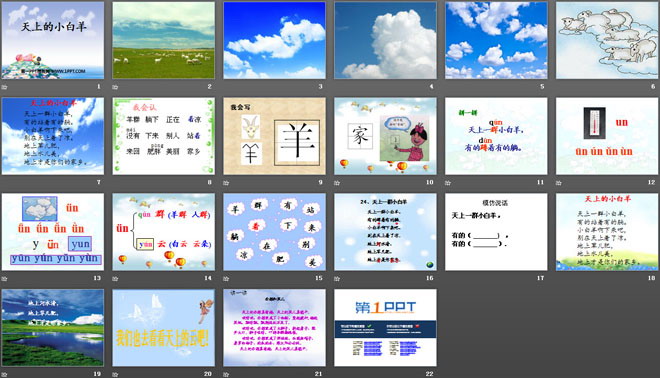 关键词:天上的小白羊教学课件,冀教版一年级上册语文PPT课件下载,一年级语文幻灯片课件下载,天上的小白羊PPT课件下载,.PPT格式;