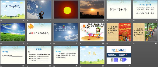 关键词:太阳的香气教学课件,冀教版一年级上册语文PPT课件下载,一年级语文幻灯片课件下载,太阳的香气PPT课件下载,.PPT格式;