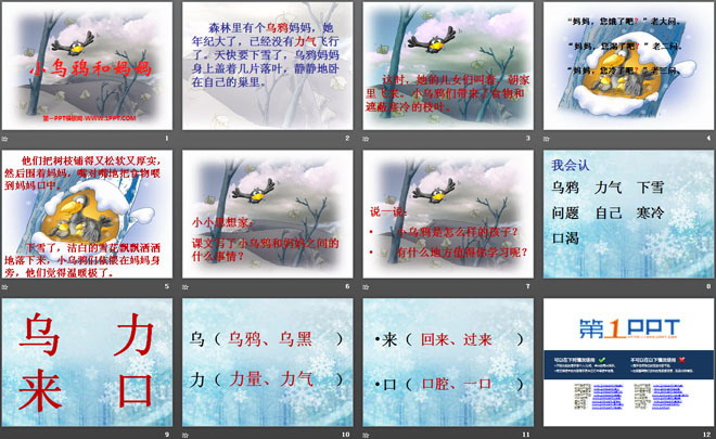 关键词:小乌鸦和妈妈教学课件,冀教版一年级上册语文PPT课件下载,一年级语文幻灯片课件下载,小乌鸦和妈妈PPT课件下载,.PPT格式;