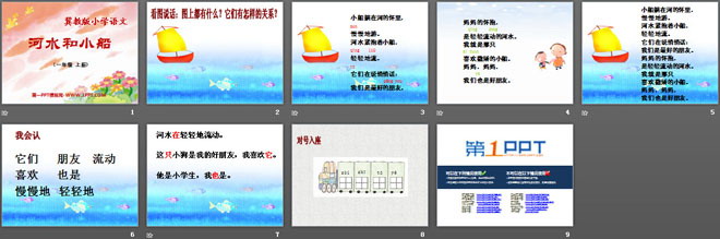 关键词:河水和小船教学课件,冀教版一年级上册语文PPT课件下载,一年级语文幻灯片课件下载,河水和小船PPT课件下载,.PPT格式;