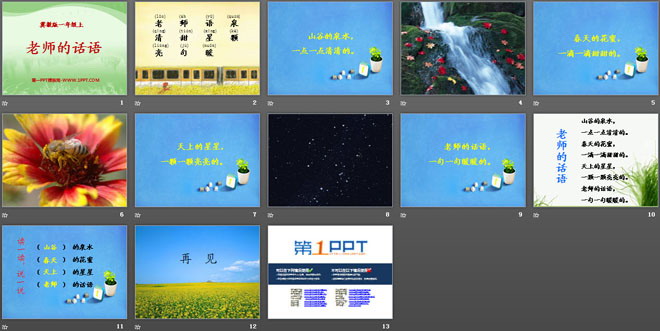 关键词:老师的话语教学课件,冀教版一年级上册语文PPT课件下载,一年级语文幻灯片课件下载,老师的话语PPT课件下载,.PPT格式;