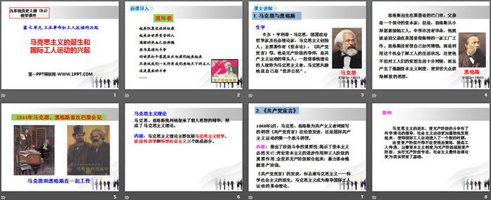 关键词:部编人教版九年级上册历史PPT课件免费下载,马克思主义的诞生和国际工人运动的兴起PPT下载,.PPT格式;