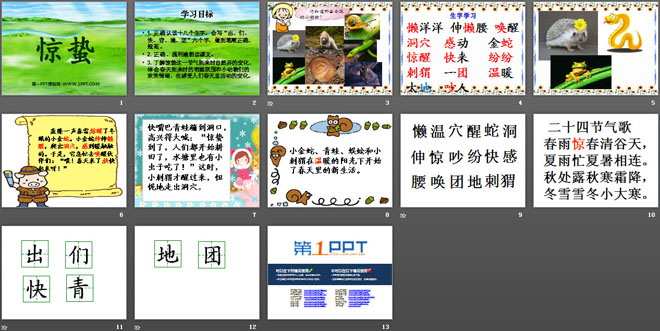关键词:惊蛰教学课件,冀教版一年级下册语文PPT课件下载,一年级语文幻灯片课件下载,惊蛰PPT课件下载,.PPT格式;