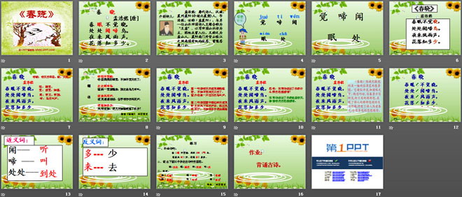 关键词:春晓教学课件,冀教版一年级下册语文PPT课件下载,一年级语文幻灯片课件下载,春晓PPT课件下载,.PPT格式;