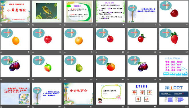关键词:小黄莺唱歌教学课件,冀教版一年级上册语文PPT课件下载,一年级语文幻灯片课件下载,小黄莺唱歌PPT课件下载,.PPT格式;