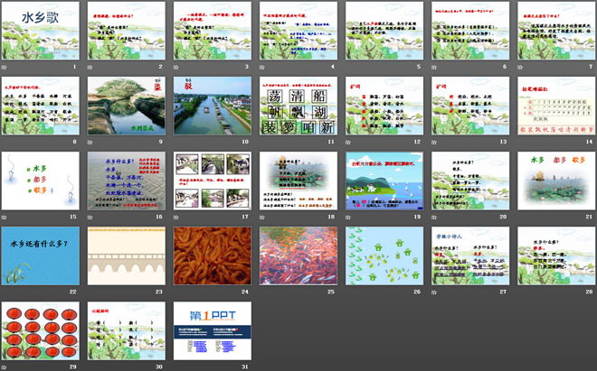 关键词:水乡歌教学课件,冀教版二年级上册语文PPT课件下载,二年级语文幻灯片课件下载,水乡歌PPT课件下载,.PPT格式;